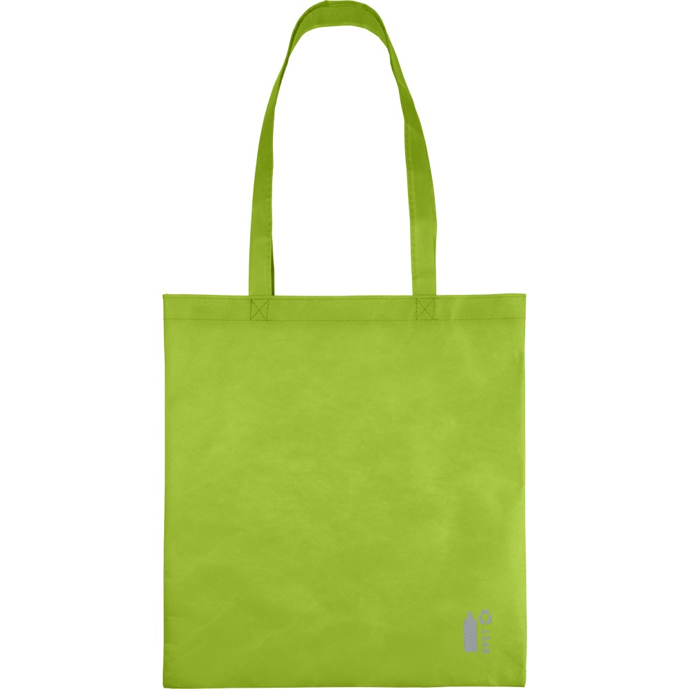 80 g/m2 újrahasznosított nemszőtt PP anyagból készült bevásárlótáska X-öltésekkel rögzített fülekkel. Kapacitáca 11 liter, teherbíró képessége 7 kg.