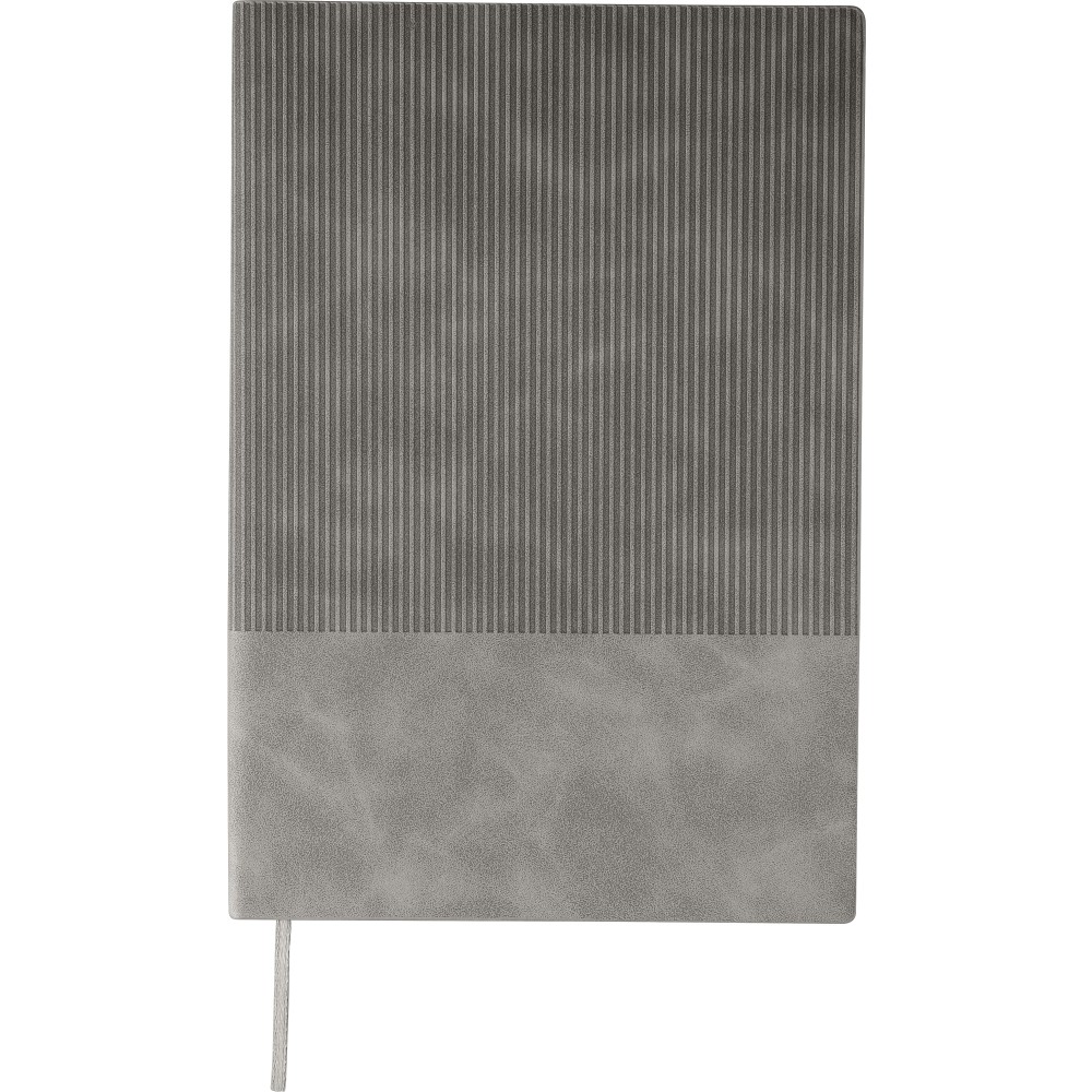 Újrahasznosított PU jegyzetfüzet, kb. A5-ös méretű, 100 lapos. Kemény borítóval és kordbársony hatású bevonattal az elülső és a hátlap felső részén. Tartalmaz egy szalagos könyvjelzőt és 80 g/m2-es vonalas lapokat. A hátoldalon dombornyomott újrahasznosított logóval.