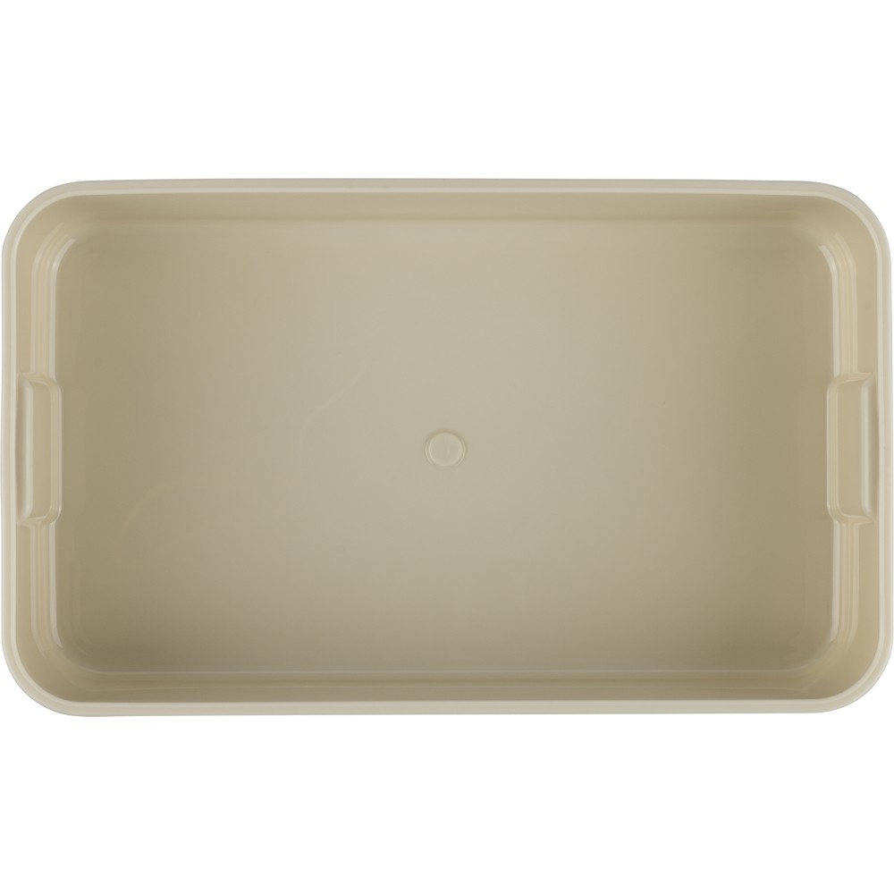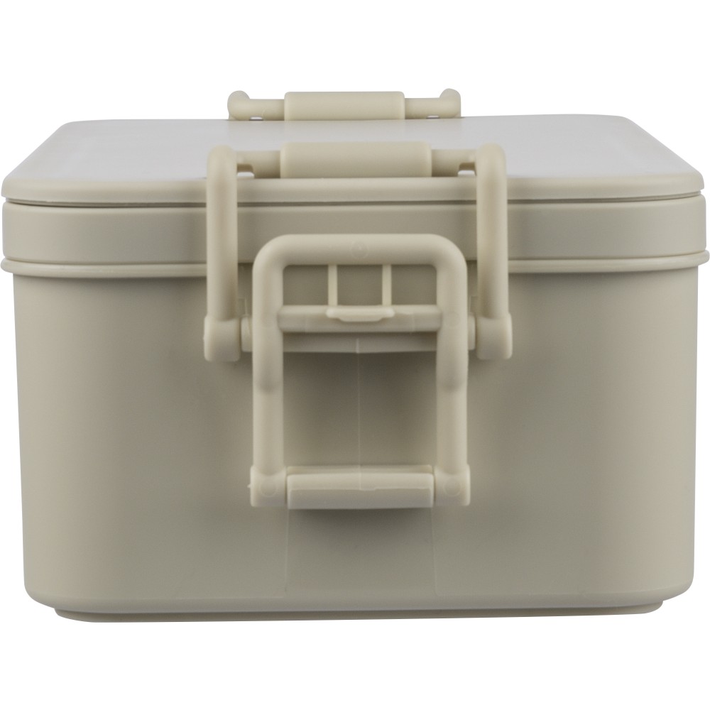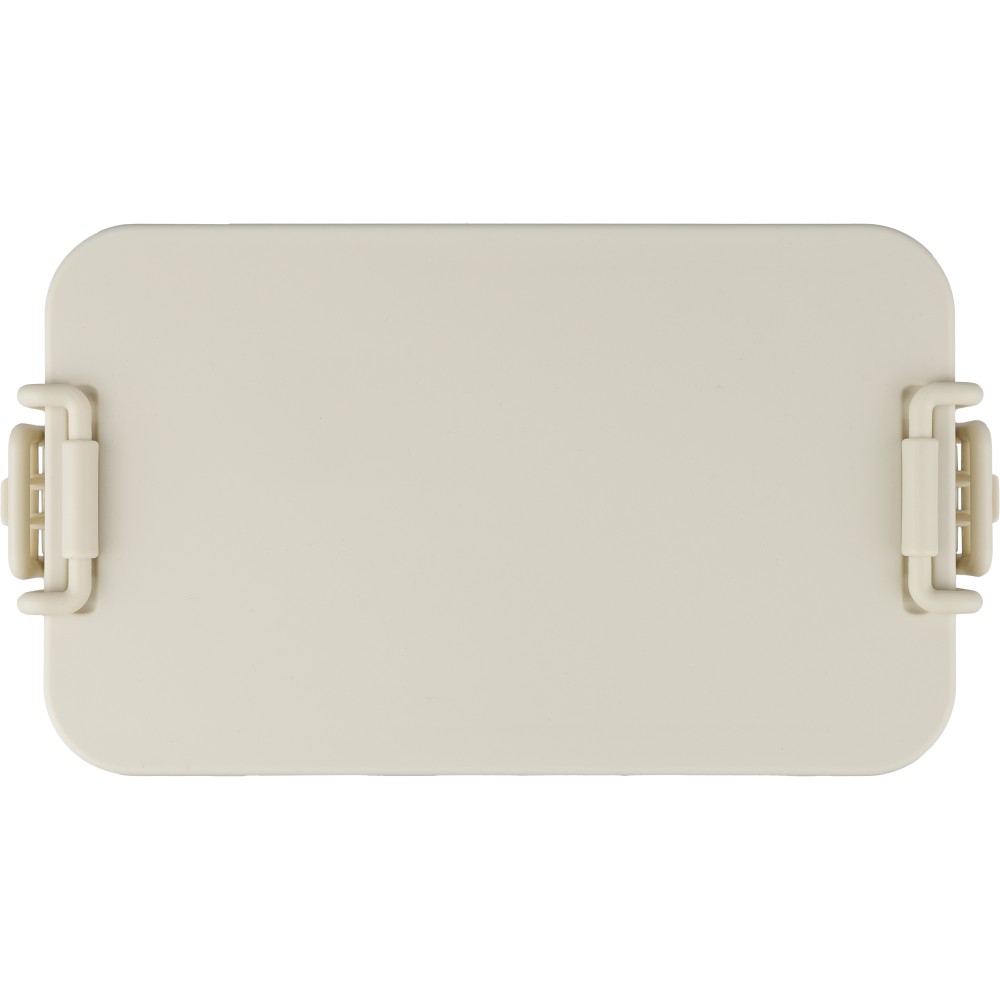 PP anyagból készült, két szintes ételtároló doboz csatos záródással és PP fedéllel. A kisebb alsó rekesz a helytakarékosság érdekében a felsőbe illeszthető. Köztes réteggel rendelkezik, amely háromrészes evőeszközkészletet tartalmaz. Űrtartalma 2 200 ml. Nincs egyenként csomagolva.
