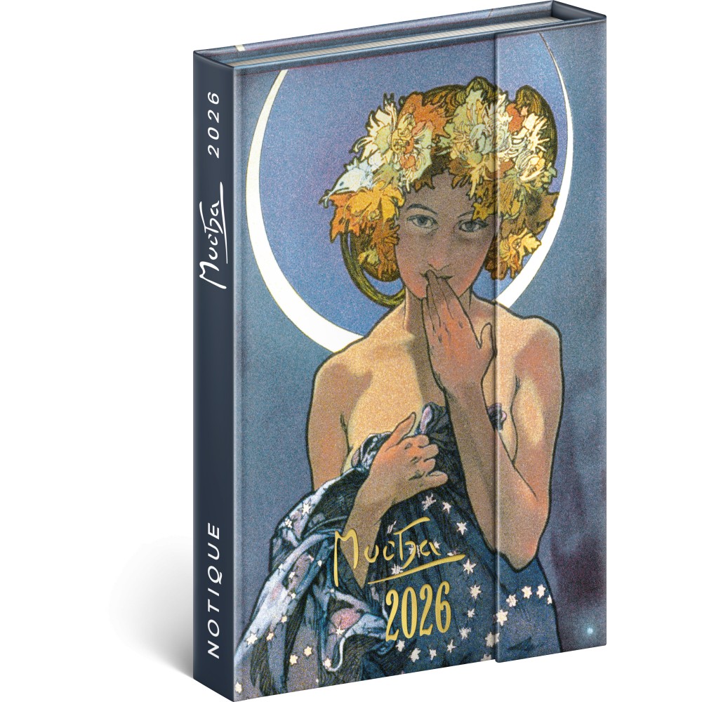 Mágnessel záródó agenda Alphonse Mucha 2026, 11 × 16 cm