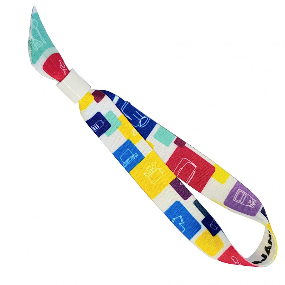 Teljes felületen szublimációs eljárással nyomható karpánt konferenciára, fesztiválra. Nem csak a biztonságos beléptetést szolgálja, hanem emlékként is elrakják az emberek. Csak dekorálva rendelhető. 15 mm széles, 35 cm hosszú szalag. A zárógyűrű külön csomagolva is kérhető vagy a szalag elejére felhúzva, előkészítve.