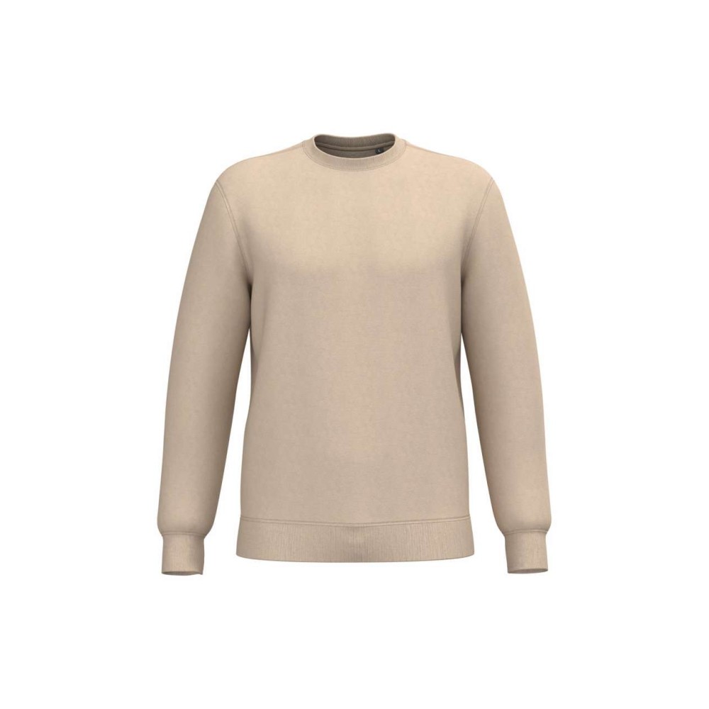 280 g/m2, 50% gyűrött pamut/50% újrahasznosított poliészter. Csiszolt polár anyag, egyenes szabás, környakas fazon. Vágott és varrott, 1x1 bordás, csőszerű összeállítás a nyakvonal, a mandzsetták és az alsó szegély jobb kiviteléért. Tónusban megegyező jersey szalag a nyakvonal belsejében. Nincs márkajelzés a nyakvonalon, csak méretcímke a könnyű dekorálás érdekében.