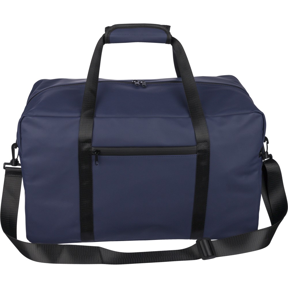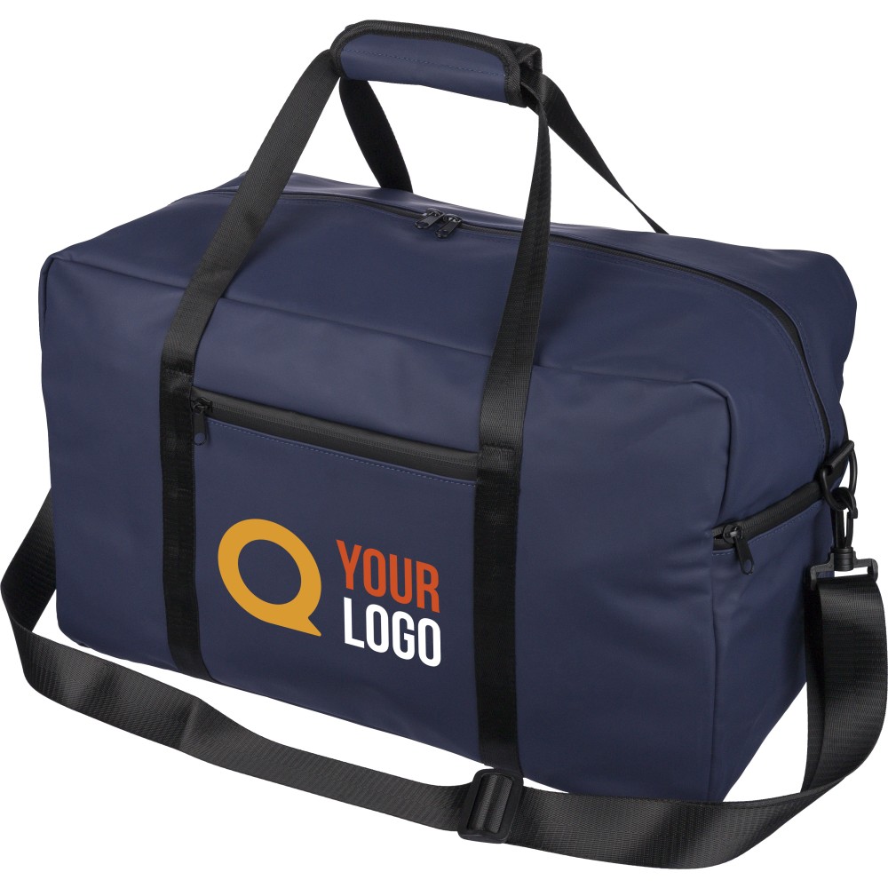 Újrahasznosított PU anyagból készült sporttáska 35 literes űrtartalommal, 210D újrahasznosított poliészter béléssel. 108 cm hosszúságú és 2,5 cm szélességű fogantyúval rendelkezik tépőzáras rögzítéssel, valamint 130 cm hosszúságú és 3,9 cm szélességű állítható vállpánttal. Elülső cipzáras zsebbel és nagy fő rekesszel készül. A belső címkén újrahasznosított alapanyagra utaló logó található.
