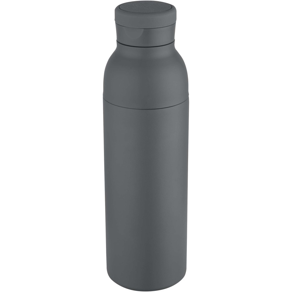 RCS tanúsítvánnyal rendelkező rozsdamentes acélból készült, duplafalú, vákuumszigetelt palack, amelynek fedelén egy diszkrét, beépített szilikon fogantyú található. Az italokat 48 órán át hidegen, vagy akár 12 órán keresztül melegen tartja. A két részből álló konstrukció megkönnyíti a tisztítást, míg a tartós porszórt bevonat és a belső rézszigetelés hosszú élettartamot és kiváló hőtartást biztosít. A terméket újrahasznosított kartonból készült ajándékdobozban szállítjuk. Űrtartalma: 650 ml.